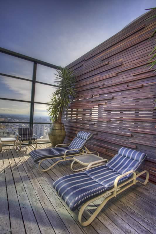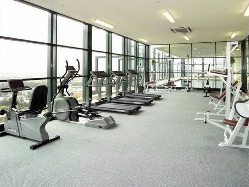 The complex has modern facilities overlooking Melbourne, including a rooftop pool, extensive gymnasium, sauna and spa.